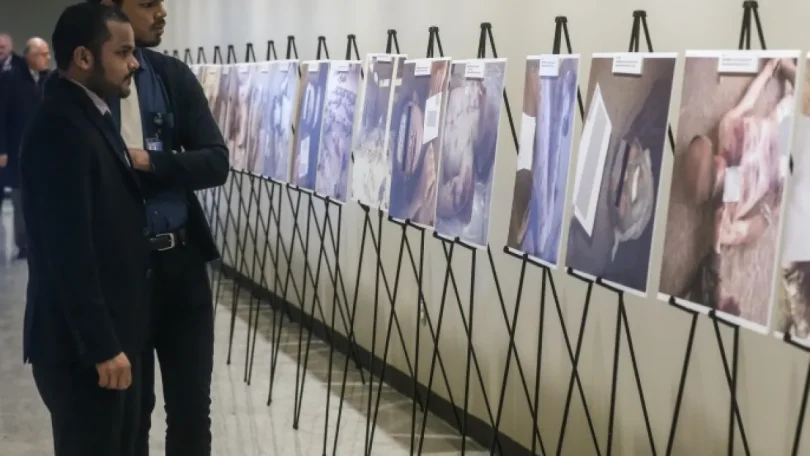 وبين هذه الصور، عثر على ما يقدر بنحو 6500 صورة لجثث صُوّرت بعناية، بعضها يظهر جثثا مكبلة اليدين ومعصوبة العينين، وهي تحمل آثار طلقات نارية في الرأس أو آثار شنق أو تعذيب مروع.