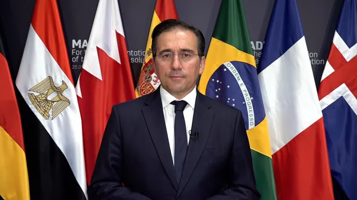 وبدعم من الوزير الإسباني يعقد وزراء خارجية دول أوروبية وعربية اليوم الأحد اجتماعا في إطار مجموعة مدريد، لبحث تطورات الوضع في قطاع غزة ودعم حل الدولتين.