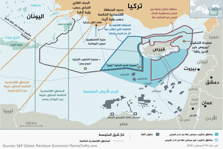 توتر شرق المتوسط.. خريطة تعقيدات وتداخلات الحدود...