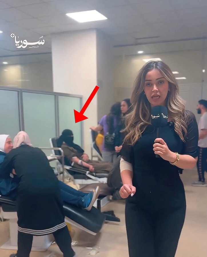 منقبة ومحجبة وراء المذيعة غير المحجبة في لقطة للمتبرعين بالدم بعد جريمة داعش بتفجير الكنيسة. شيطنة المنقبة والمحجبة تماما كشيطنة المسيحي . الدواعش يتخادمون على اختلاف الطوائف والاتجاهات . بدلا من الاحتفاء بهذه الصورة التي تعكس الإجماع السوري ، يهاجمها دواعش العلمانية . داعش الإسلامية وداعش العلمانية فروع لذات الأصل .